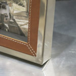 Außerdem ist unser Fotorahmen in Handarbeit aus poliertem Metall und Leder aus vielen Einzelteilen zusammengesetzt worden.