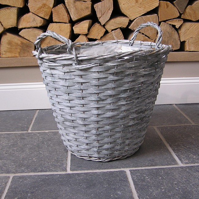 Dieser Korb im Vintage-Look eignet sich besonders gut zum Bepflanzen, da er innen mit Folie ausgeschlagen ist. Die Längsstreben sind aus Metall, wodurch er stabil steht.